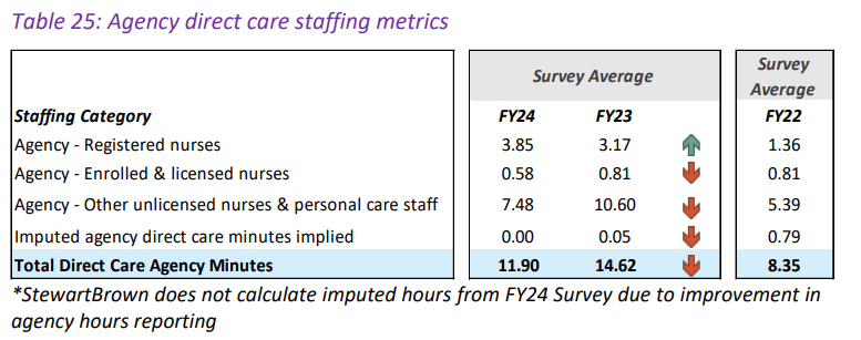 The use of agency RNs in aged care remains at around 10% of total RN usage. The average agency RN hourly rate of $128 for the June 2024 quarter is significantly higher than the $85 per hour paid to in-house RNs.