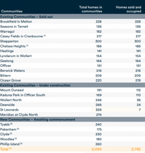 “With the current pipeline of projects, the business has the ability to deliver 1,100 to 1,300 new home settlements and 450 to 550 resale settlements over the next three years subject to the ongoing uncertainty and restrictions in relation to the COVID-19 pandemic on the Victorian property market.”