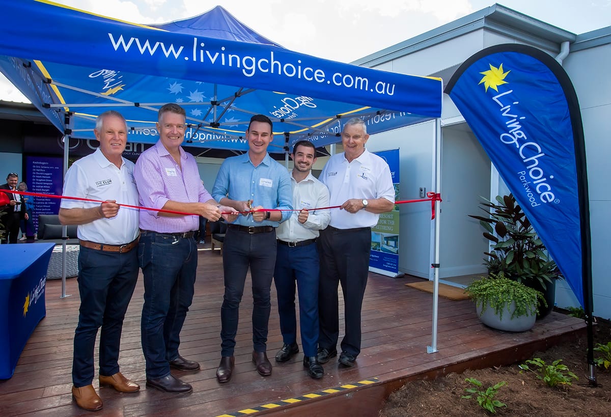 State MP Sam O’Connor, Councillors William Owen-Jones and Ryan Bayldon-Lumsden joined Living Choice directors Ian Tregoning and Graham Hobbs to cut the ribbon to mark the opening of the display apartment and adjacent sales office. Both are located at the club entrance.