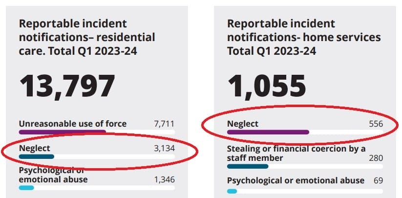 Another worrying trend is increased rates of neglect in both residential aged care and home care, identified through the Serious Incident Response Scheme (SIRS).