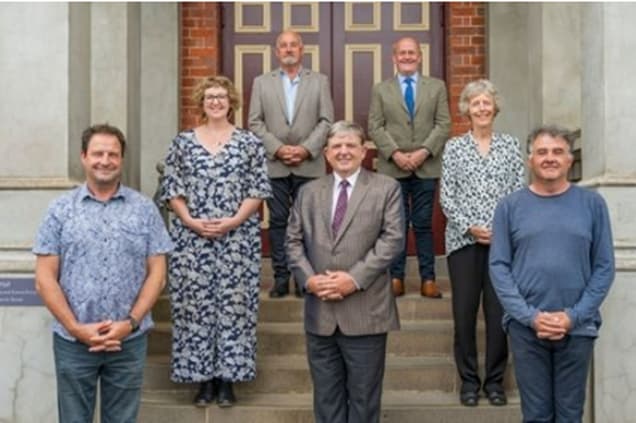 Seven Mount Alexander Shire Councillors outside Castlemaine Town Hall.