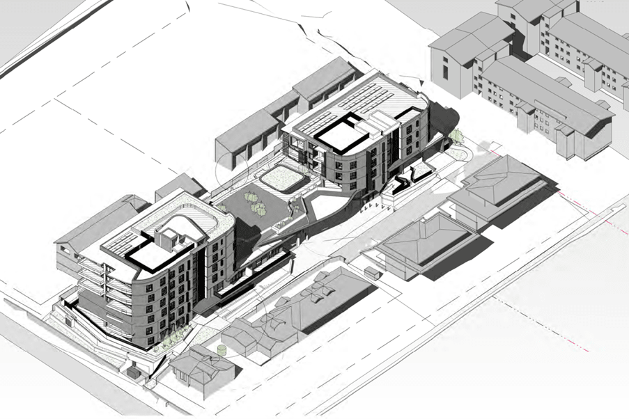 In October last year, the new plans by architects Jackson Teece now complies with two buildings of six storeys and four storeys for eight one-bedroom apartments, 35 two-bedroom units and 9 three-bedroom apartments. There will be a basement car park for 54 vehicles.