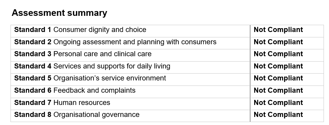 Homes that fail quality assessments are supposed to receive no more than 2 stars, yet Rodney's investigations revealed more than 300 aged care homes were not compliant with the standards but rated more than 2 stars. The Star Ratings system was already facing scrutiny prior to the report. In February 2024, the Department of Health and Aged Care awarded Allen and Clarke Consulting a $579,472 contract to conduct the 'Independent evaluation of Star Ratings for residential aged care'. In May 2024, the Department awarded consumer analysis firm Fiftyfive5 a $330,000 contract to conduct market research of the Aged Care Star Ratings system.