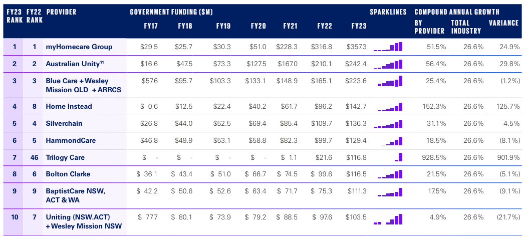 The top 10 largest home care providers in Australia
